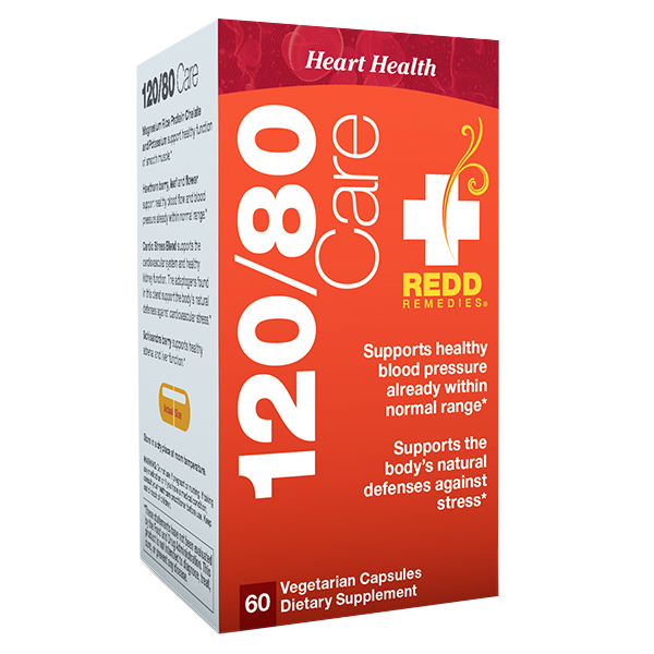 To help you maintain healthy blood pressure, Redd Remedies created 120/80 Care™ that focuses on the combination of contributors to healthy blood pressure – your physical body, your emotions (through relaxation), and a youthful sense of well-being. Supporting each of these three elements to maintain them in a desired range offers a comprehensive solution for healthy blood pressure.